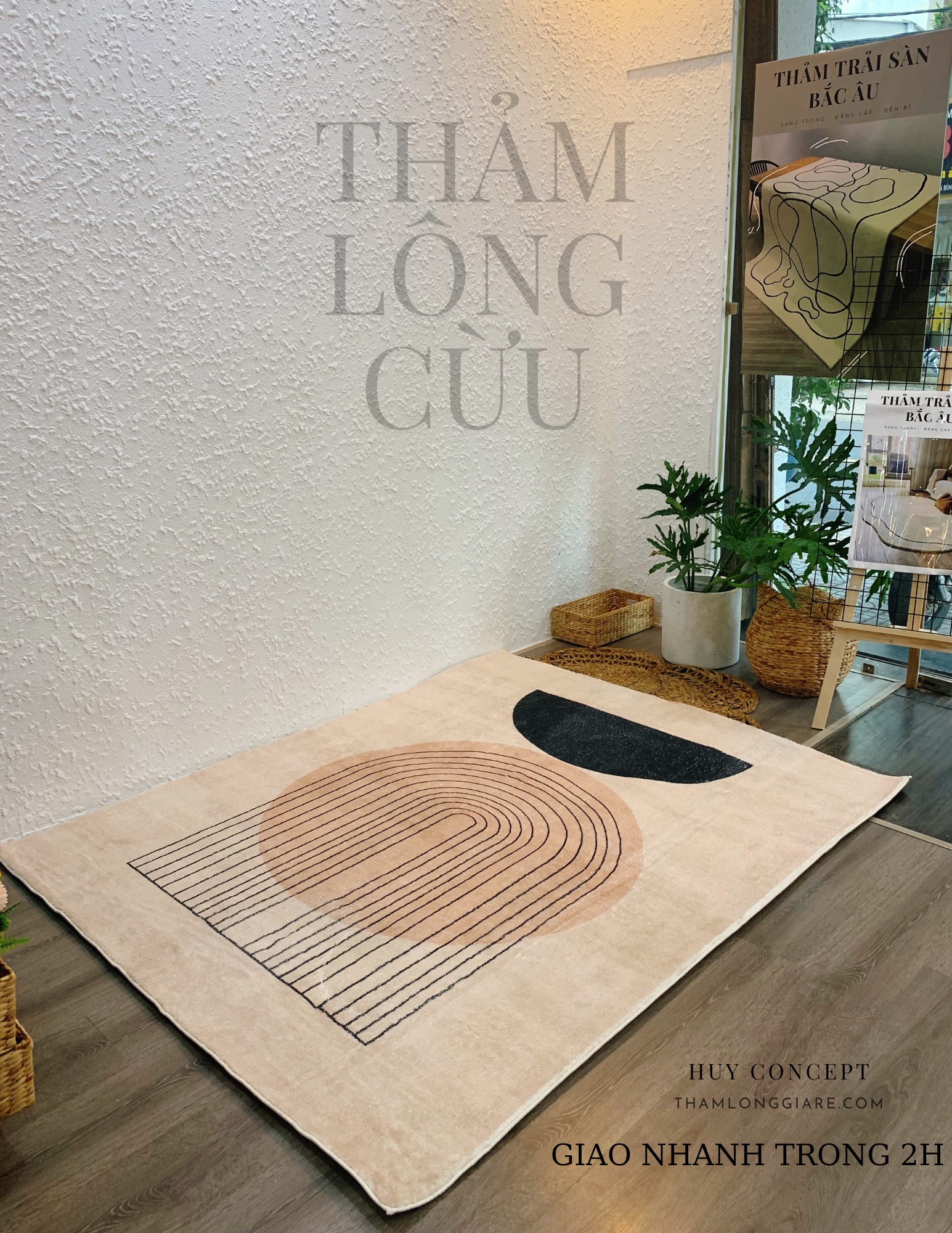 Thảm lông trải sàn họa tiết CHINDI lông cừu Cashmere cao cấp phong cách Bắc Âu hiện đại