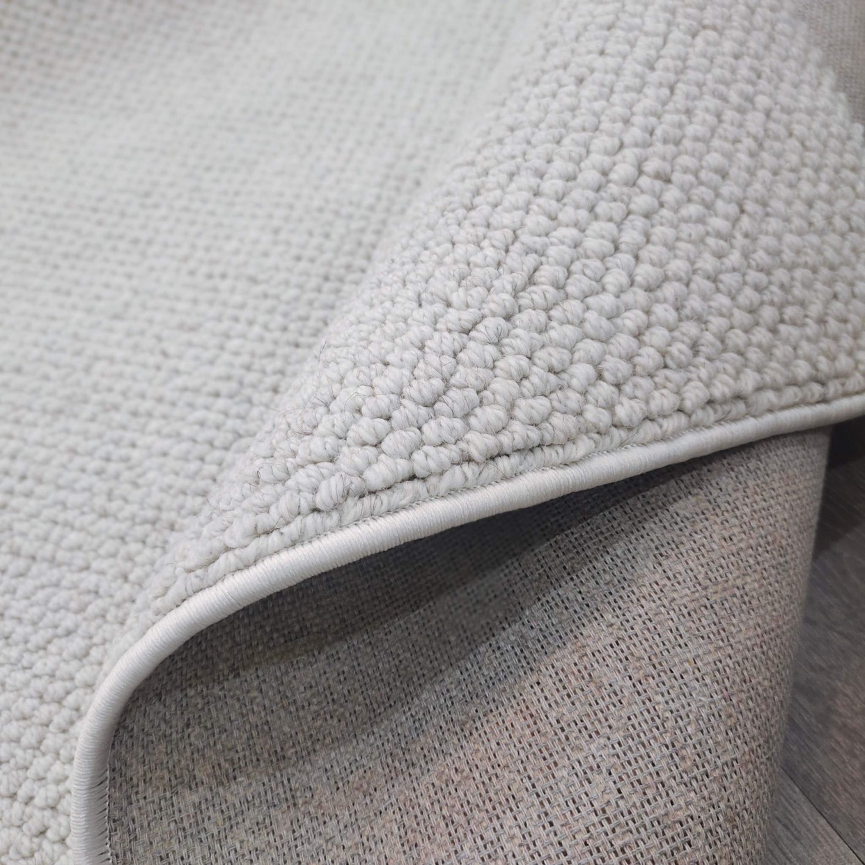 Phần nền thảm được dệt từ sợi đay tự nhiên, không bị ảnh hưởng bởi những yếu tố bên ngoài như: không bị cong vênh do ảnh hưởng bởi nhiệt độ, không bong tróc khi giặt bằng máy, không ẩm mốc khi độ ẩm cao,...